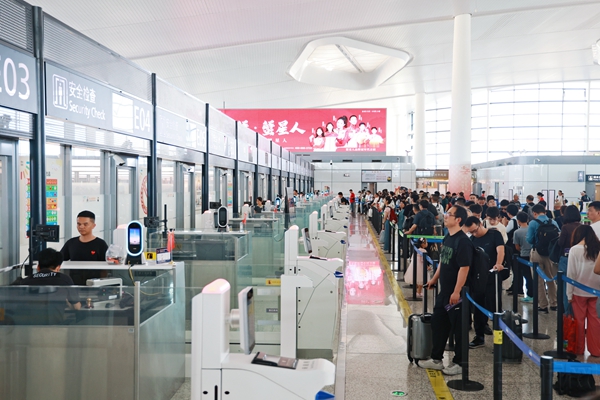 為保障大客流旅客順暢出行,浙江各機(jī)場(chǎng)覆蓋旅客出行全流程的便民服務(wù)再升級(jí)。針對(duì)性推出特色服務(wù),從行李保障到特殊旅客關(guān)懷,全方位提升出行體驗(yàn)。杭州機(jī)場(chǎng)以真情服務(wù)助力旅客“杭行無(wú)憂”,增設(shè)團(tuán)隊(duì)辦理柜臺(tái),增加值機(jī)、安檢通道數(shù)量和工作人員,盡量縮短旅客排隊(duì)等候時(shí)間。同時(shí)根據(jù)地面交通出行分時(shí)流量情況,聯(lián)動(dòng)出租車、網(wǎng)約車運(yùn)營(yíng)單位,確保高峰期間運(yùn)力充足。此外還通過(guò)增加機(jī)場(chǎng)大巴及“無(wú)憂暢行”運(yùn)力儲(chǔ)備,提升旅客保障能力,持續(xù)改善旅客乘車體驗(yàn)。