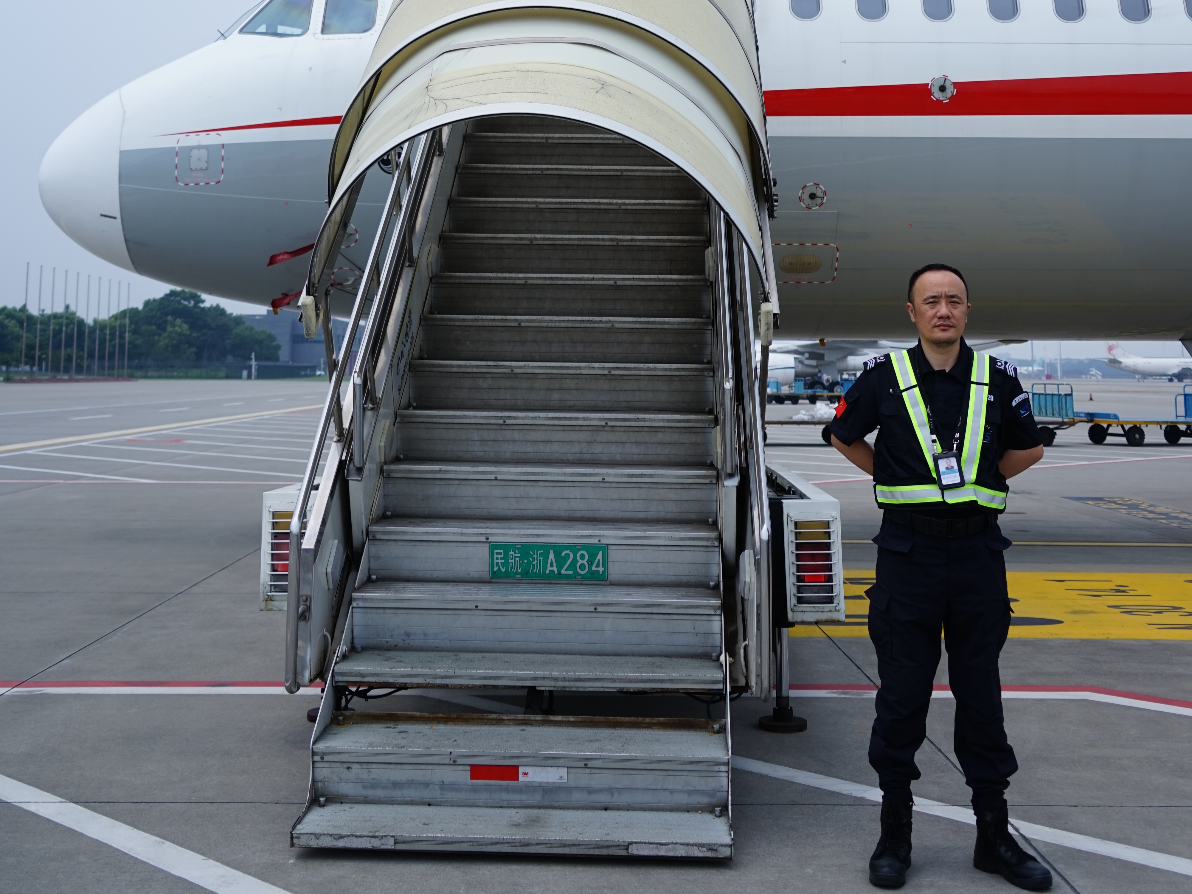 在浙江空港,有這樣一群特殊的民航衛(wèi)士。他們曾是戍邊衛(wèi)士、巡海精兵、空軍戰(zhàn)將,如今是空港續(xù)寫榮光的民航人,用忠誠、紀律、過硬作風詮釋“退役不褪色、轉業(yè)不轉志”的誓言。在保安公司的員工隊伍中,就有110多位退伍軍人,他們經歷了從“迷彩綠”到“空港藍”的轉變,遍布全省機場,在航站樓值守、飛機監(jiān)看護、橋載裝卸等30余種安保崗位上履職盡責、默默奉獻,護航機場安全平穩(wěn)運行。