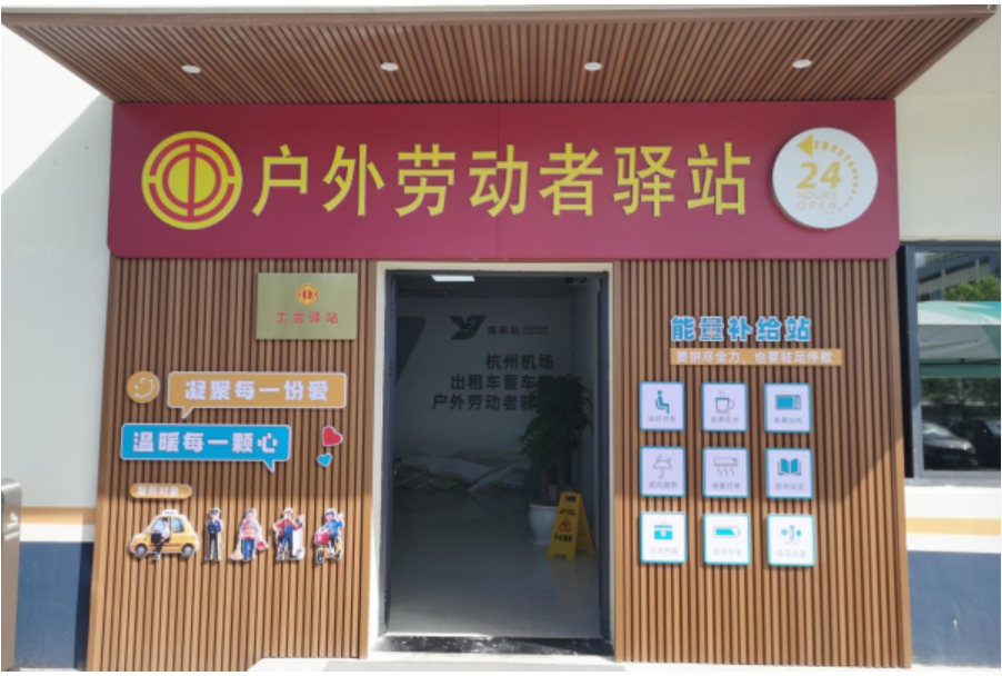 為切實改善出租車和網(wǎng)約車司機休息環(huán)境,杭州機場在各級工會的支持下,在出租車和網(wǎng)約車蓄車區(qū)建設(shè)24小時戶外勞動者驛站。此次啟用的戶外勞動者驛站共有兩處,分別位于出租車蓄車區(qū)司機休息室和P3網(wǎng)約車司機2號休息室。兩處總面積360㎡,站內(nèi)均規(guī)劃了休息區(qū)、就餐區(qū)、閱讀區(qū),配置了微波爐、飲水機、冰箱、空調(diào)、血壓儀、醫(yī)藥箱、書報架等設(shè)施,讓蓄車區(qū)的司機、保安和保潔在高溫酷暑下感受到家的溫馨與舒適。