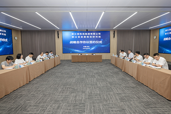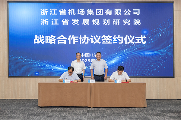 8月14日下午,浙江省機(jī)場(chǎng)集團(tuán)與浙江省發(fā)展規(guī)劃研究院簽訂戰(zhàn)略合作協(xié)議。省機(jī)場(chǎng)集團(tuán)黨委書記、董事長(zhǎng)魏建根,院黨組書記、院長(zhǎng)李軍出席會(huì)議并講話。省機(jī)場(chǎng)集團(tuán)黨委委員、副總經(jīng)理潘宏志與院黨組成員、副院長(zhǎng)潘毅剛代表雙方簽署戰(zhàn)略合作協(xié)議。省機(jī)場(chǎng)集團(tuán)辦公室、戰(zhàn)略部、科創(chuàng)部及省低空公司負(fù)責(zé)人,浙江省發(fā)展規(guī)劃研究院有關(guān)部門負(fù)責(zé)人共同見證。