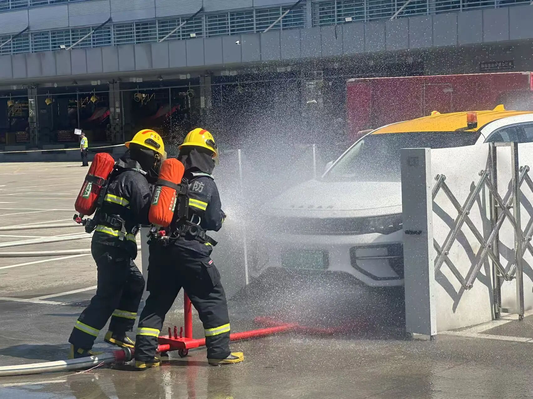 寧波機(jī)場在停車場管理中,針對新能源車冒煙起火難滅、高溫快速燃爆、滅火毯阻燃降損低效等現(xiàn)實(shí)問題,主動(dòng)聯(lián)合防火設(shè)備企業(yè),積極探尋防控施救方法,科學(xué)布設(shè)新型防火隔離設(shè)施——移動(dòng)伸縮防火墻,突破了新能源車火災(zāi)前期控制難、火勢蔓延快的阻燃瓶頸,在新能源車火災(zāi)初期,進(jìn)行高效處置,快速隔溫阻燃,控制火情蔓延,有效提升停車 場消防應(yīng)急處置能力,最大限度地減少火災(zāi)損失,最大限度地保護(hù)生命財(cái)產(chǎn)安全。